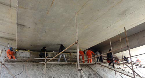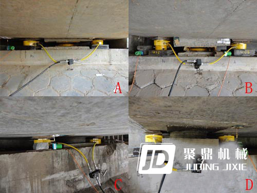 首先我司工作人員對(duì)鎮(zhèn)江路段橋梁的跨距、每跨的梁片數(shù)、梁片的結(jié)構(gòu)形式以及橋梁的高度進(jìn)行現(xiàn)場現(xiàn)場勘察。并查看相關(guān)圖紙核實(shí)橋梁縱向連續(xù)梁片數(shù),從而初步計(jì)算出梁體重量及荷載能力。然后經(jīng)過測量梁片與墩臺(tái)之間的實(shí)際距離,研究放置千斤頂?shù)奈恢眉芭R時(shí)支撐位置。討論現(xiàn)場施工操作人員、觀察人員的位置以及整個(gè)施工環(huán)境。