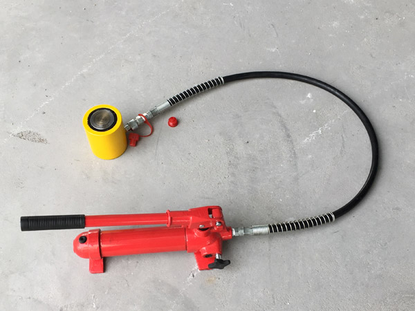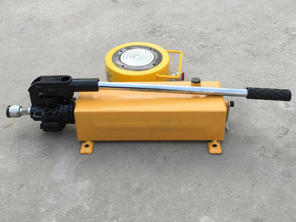 8、使用時(shí)先將手動(dòng)泵的快速接頭與頂對(duì)接,然后選好位置,將油泵上的放油螺釘旋緊,即可工作。欲使活塞桿下降,將手動(dòng)油泵手輪按逆時(shí)針方向微微旋松,油缸卸荷,活塞桿即逐漸下降。否則下降速度過快將產(chǎn)生危險(xiǎn)。