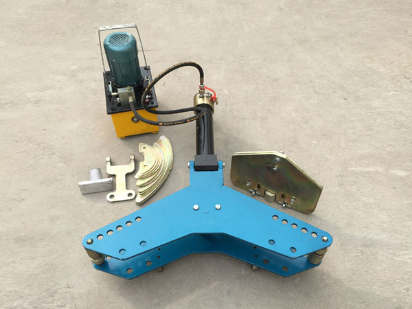 由手動泵(電動泵)(16),高壓;輸油管(13),快速接頭(2), 工作缸 (1),彎排部件(包括上、下花板,夾板模頭,直角模頭,輥柱, R模板等)組成。